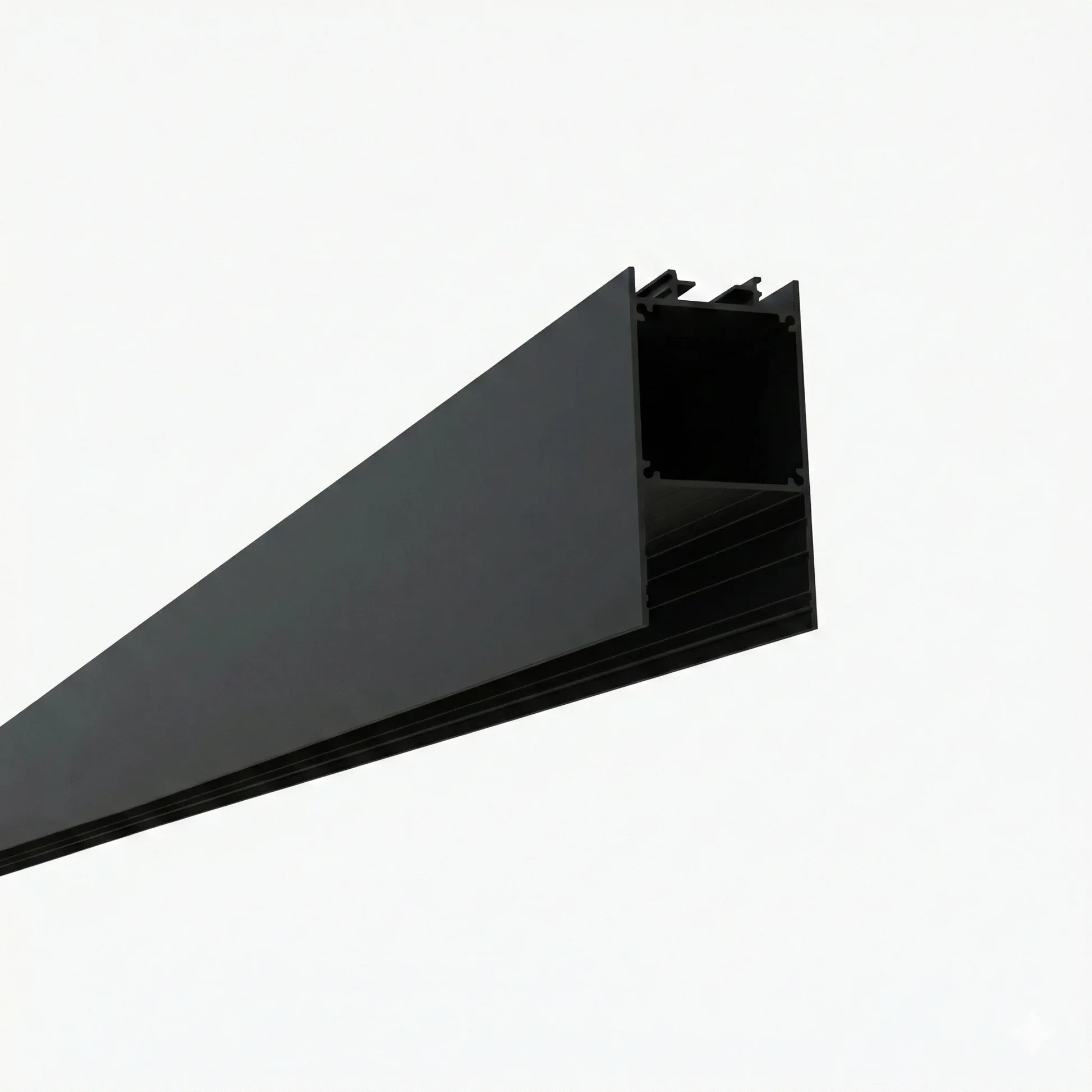 ASP-0535, statik siyah boyalı (RAL 9005) yüzeye sahip slim sarkıt lineer LED profildir. 30mm’ye kadar LED şerit uyumu ve driver alanı ile modern mekanlarda net ve profesyonel bir ışık hattı hedefler.